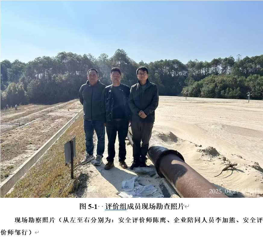 项目简介:腾冲县瑞滇山寨横河锡矿采选厂黑谷地箐尾矿库由腾冲县瑞滇山寨横河锡矿采选厂、腾冲县瑞滇花斑竹园锡矿有限责任公司、腾冲市山寨石马肚锡矿有限责任公司、腾冲县瑞滇湾担山锡矿有限责任公司四家企业共同合资建设。四家企业的经营范围均为锡矿采选、销售,尾矿库由腾冲县瑞滇山寨横河锡矿采选厂进行管理。该尾矿库位于腾冲市滇滩镇山寨村,距腾冲市约45km。该尾矿库尾矿坝设计由初期坝和堆积坝组成,初期坝坝高15.0m,清基深3.0m,堆积坝高13.0m,总坝高含清基深31.0m,不含清基深28.0m,设计全库容54.3万m3,有效库容46.94万m3。企业于2015年首次取得安全生产许可证,现安全生产许可证证号:(保)FM安许证字[2022]000004号,有效期:2022年09月09日至2025年09月08日。 腾冲县瑞滇山寨横河锡矿采选厂黑谷地箐尾矿库安全生产许可证有效期限为:2022年09月09日至2025年09月08日。因尾矿库需要补充设施及现场整改等工作,遇汛期雨水较大,现场施工进度缓慢,导致工期完成时间滞后。企业于2025年8月27日向保山市应急管理局(原安全生产许可证颁发单位)提交了《关于腾冲县瑞滇山寨横河锡矿采选厂黑谷地箐尾矿库暂缓办理安全生产许可证延续的申请》并得到保山市应急管理局批复同意。 尾矿库为四等库,现状尾矿坝由初期坝及五级子坝组成,初期坝为碾压土石坝,初期坝坝高15.0m(不含清基深3.0m),五级子坝高7.5m,现总坝高22.5m;现状尾矿库全库容约30.19万m3,有效库容约25.25万m3;现排洪方式为框架式排水井+排水管排洪。 腾冲县瑞滇山寨横河锡矿采选厂为了办理黑谷地箐尾矿库安全生产许可证换证手续,按照《中华人民共和国安全生产法》《安全生产许可证条例》《非煤矿矿山企业安全生产许可证实施办法》《尾矿库安全监督管理规定》等安全生产法律法规的要求,委托保山市民生安全评价有限公司对其尾矿库进行安全现状评价。 保山市民生安全评价有限公司接受该项目委托后,成立了该项目安全现状评价小组,组织公司有关技术力量开展了安全现状评价工作。在收集相关法律、法规、标准和规范的基础上,评价小组于2025年4月27日进行了现场勘察和资料收集工作,于2025年8月19日评价组对现场整改情况进行了复核,于2025年10月31日完成了报告编制,于2025年11月15日完成了报告的组内审核、技术审核、过程控制审核,根据审核的建议要求,评价小组对安全现状评价报告进行了修改、完善并最终定稿。 |