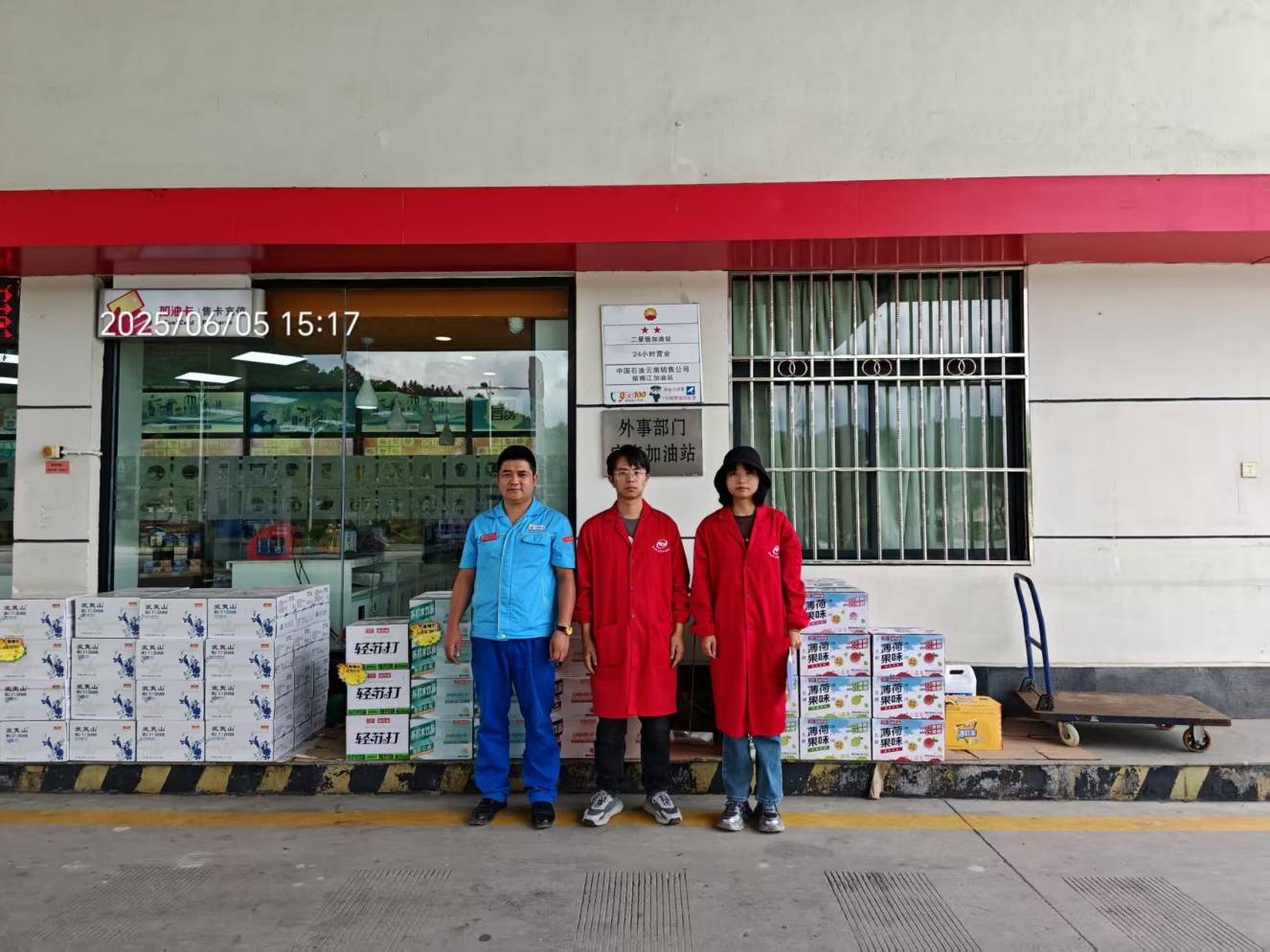 (从左至右依次为:加油站曾广坤、评价师杨善福、评价师罗中苹)